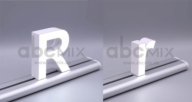 Frei kombinierbare LED Sonderzeichen mit Schienensystem.